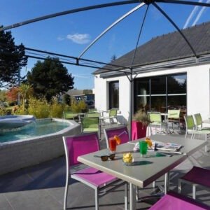Piscine d’eau de mer chauffée et espace détente, parfait pour se relaxer après la plage.